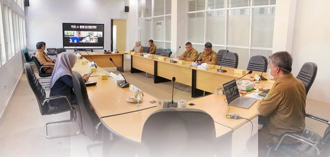 DIBAHAS: Rakor Nasional secara daring bersama Menteri Dalam Negeri Tito Karnavian dan Menteri Perdagangan Zulkifli Hasan, Senin (19/5).(pemko padang panjang)