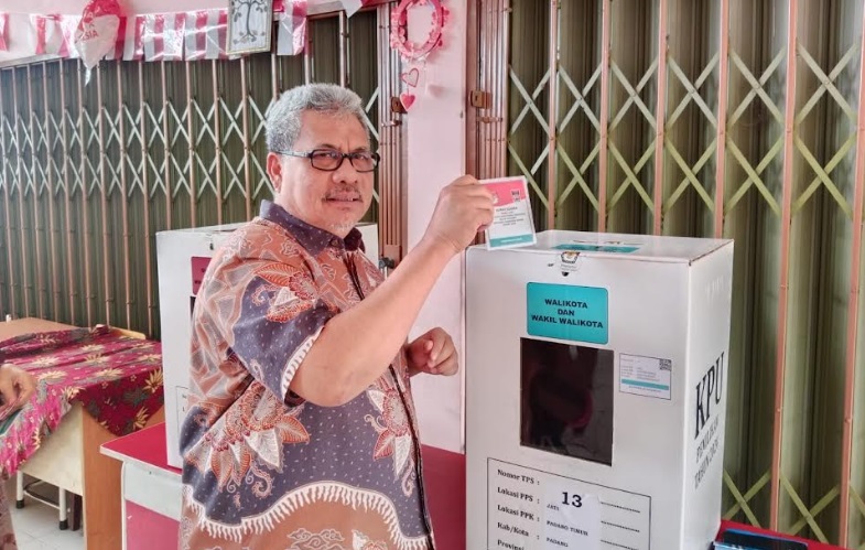 BERIKAN SUARA: Ketua DPRD Sumbar, Muhidi menyalurkan suara di Pilkada serentak di TPS 13 Jati Parak Salai, Padang Timur, Kota Padang, pada Rabu (27/11).(dprd sumbar)