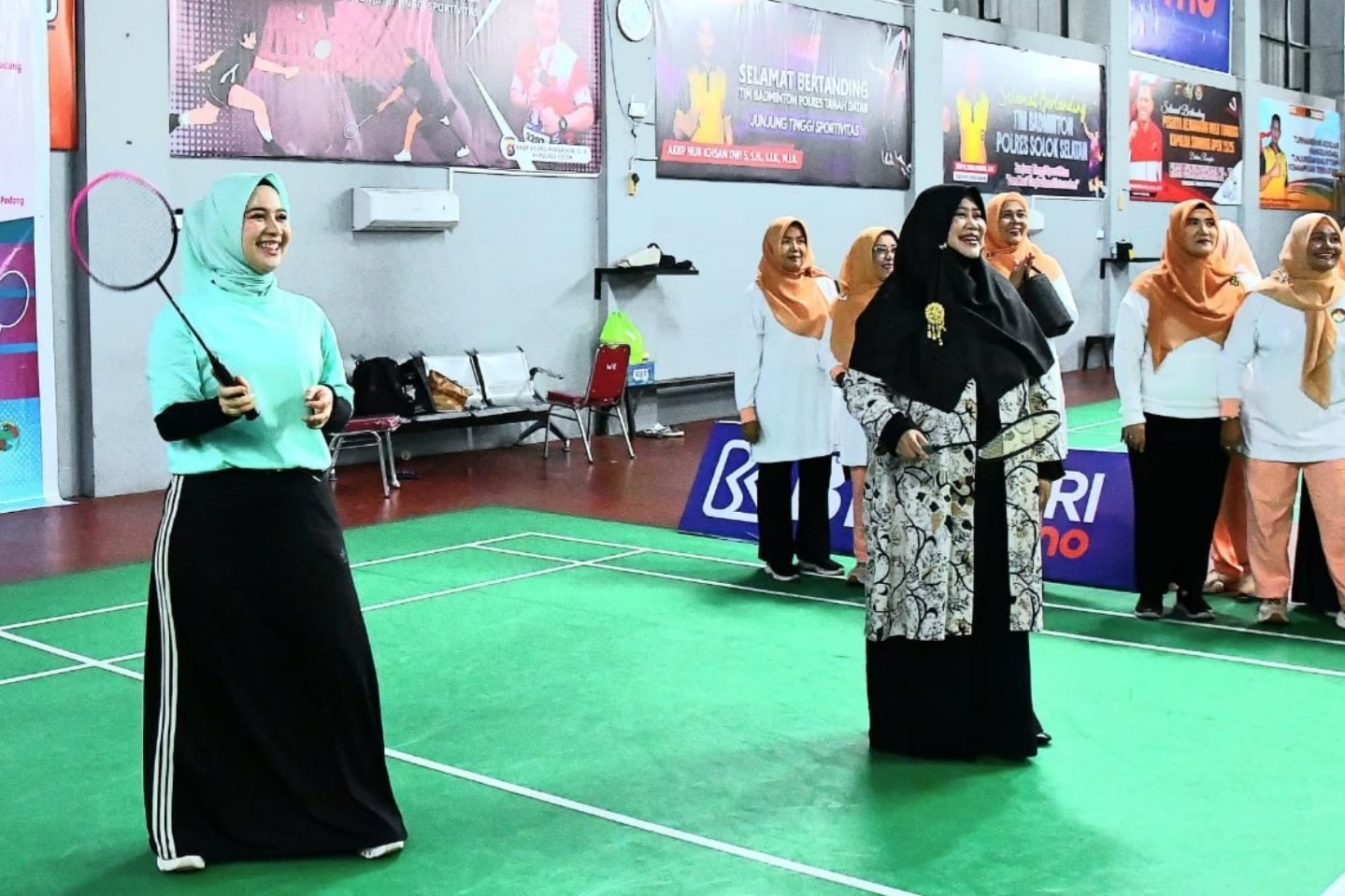 ANTUSIAS: Para peserta ketika ikut Turnamen Badminton Open 1.0 Tahun 2025 yang digelar di GOR Bulutangkis Polda Sumbar.(pemko padang)