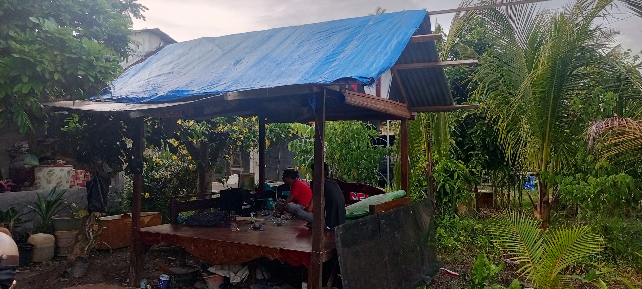 dilapisi terpal agar tidak masuk air di saat hujan. Sebagian sisi gubuk