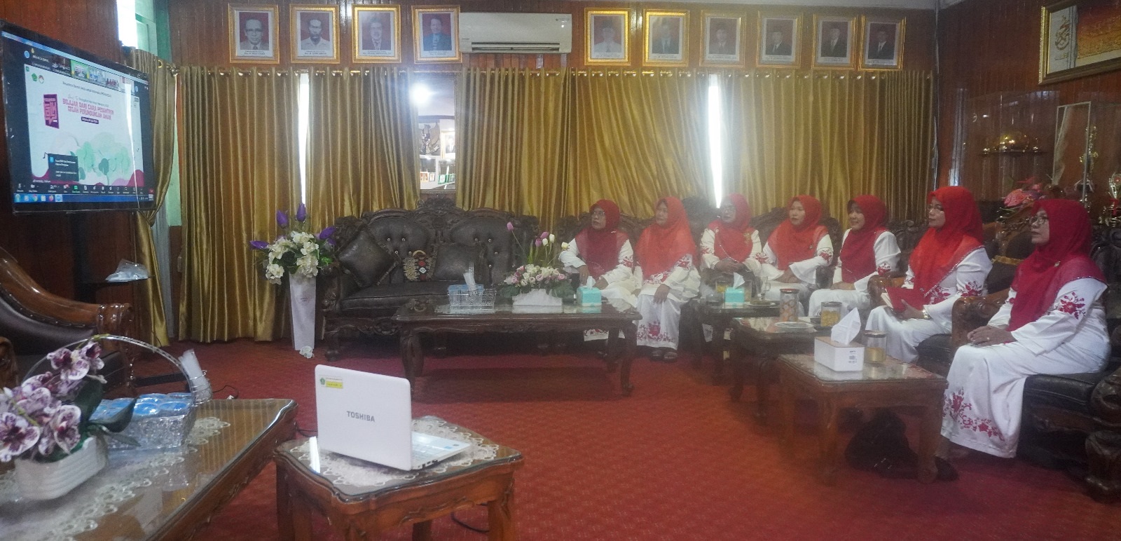 DENGAR ARAHAN: DWP Kemenag Kota Padang saat mengikuti Paranesia untuk Wujudkan Pesantren Ramah Anak secara online di Ruangan utama Kantor Kementerian Agama Kota Padang pada Kamis 18 Juli 2024.