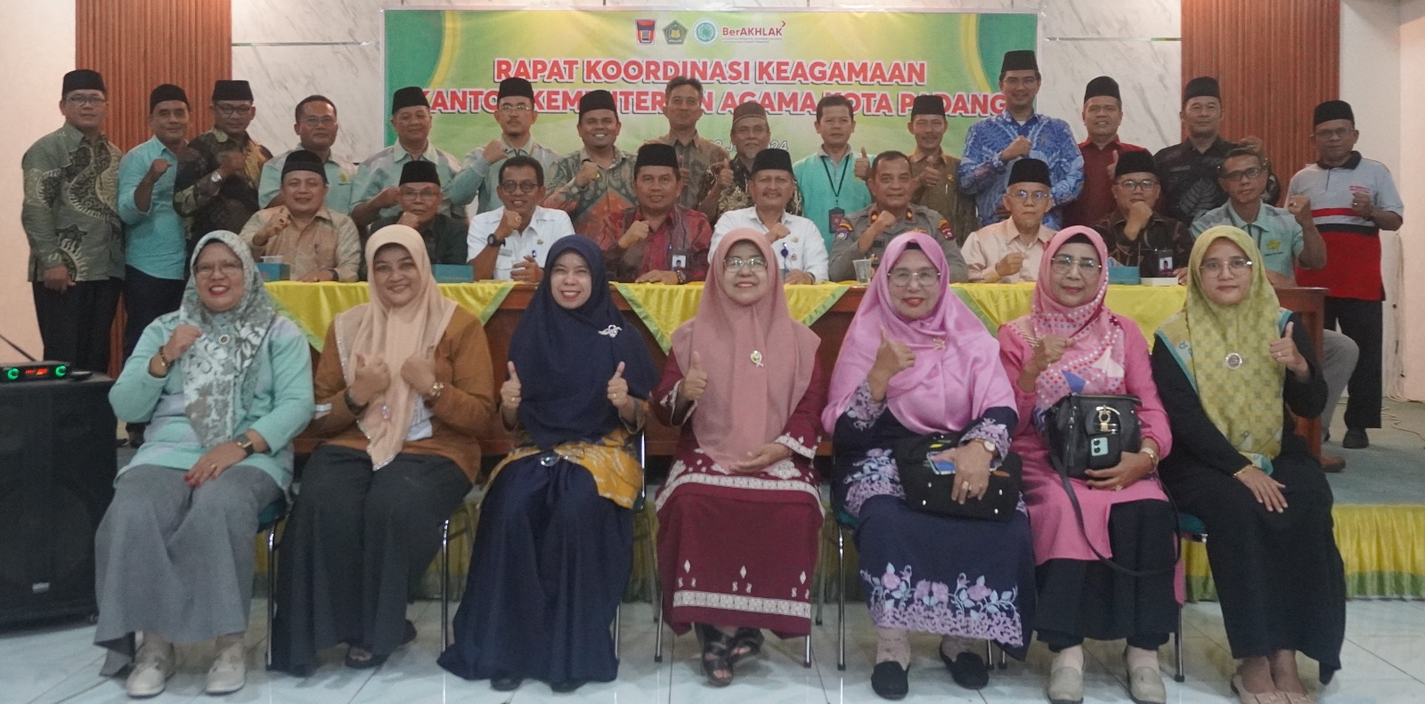 AKRAB: Para peserta foto bersama di sela-sela Rakor Keagamaan yang dilaksanakan Kemenag Padang di Aula Lantai 2 pada Rabu (3/7/2024).