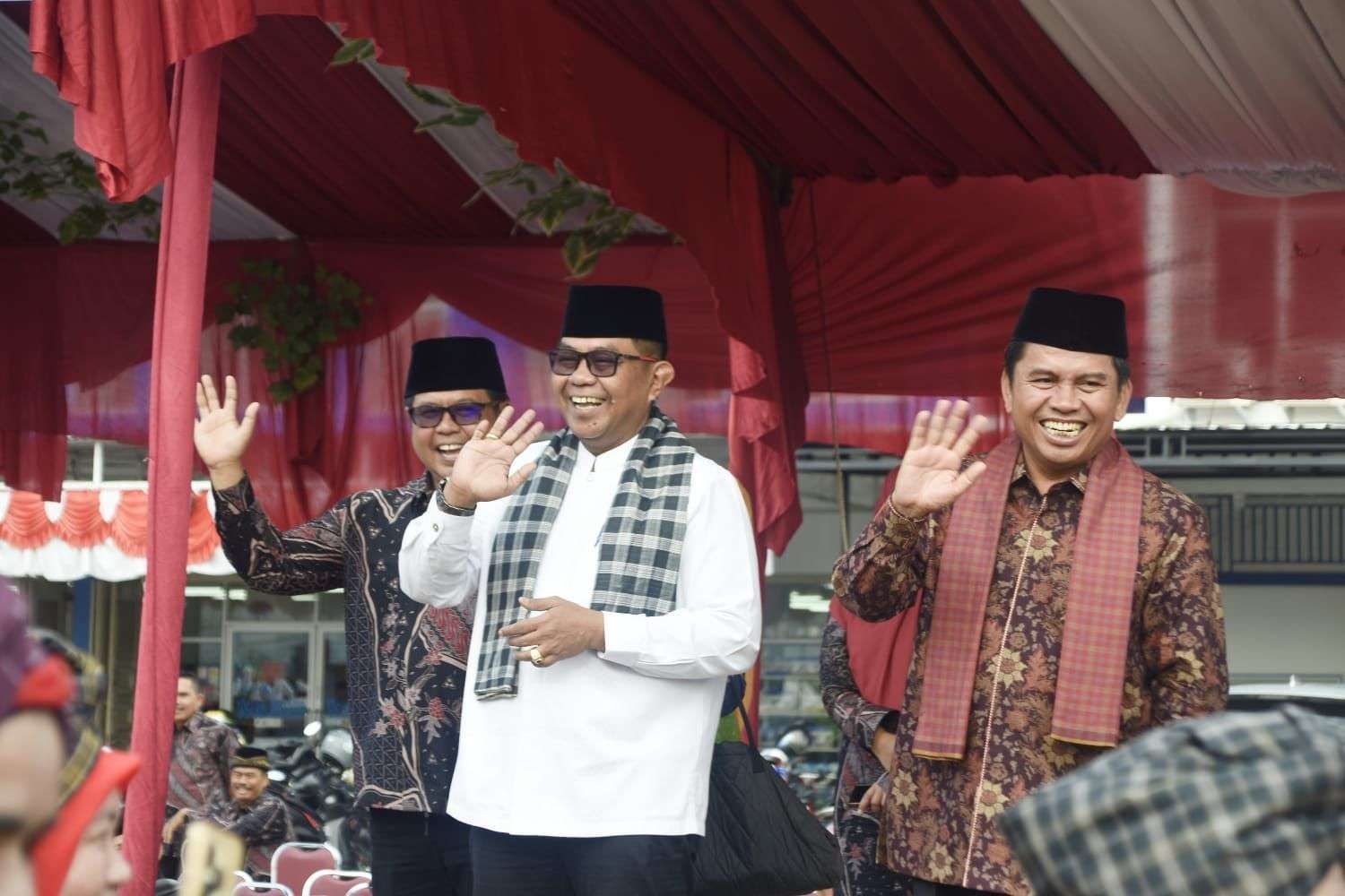 DILEPAS: Pelepasan pawai akbar MTQN ke-41 Kota Padang yang dilepas Pj Sekko Padang, Yosefriawan didampingi Kakan Kemenag Kota Padang, Edy Oktafiandi.