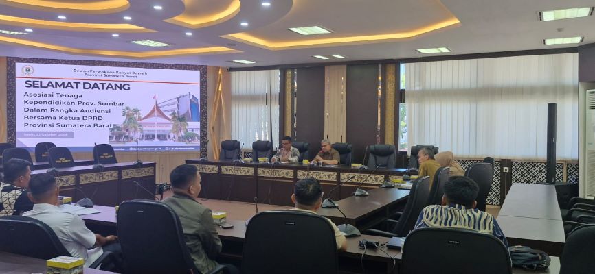 DISKUSI: Pertemuan Asosiasi Tenaga Kependidikan Sumbar dengan DPRD Sumbar, Senin (21/10). (sumber : dprd sumbar)