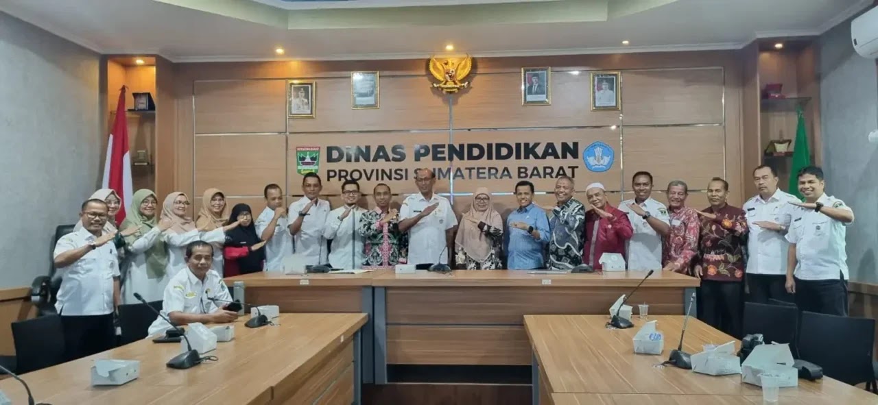 Padang, Sindotime—Untuk pertama kalinya, Dinas Pendidikan Sumbar menggelar pertemuan resmi bersama Dewan Pendidikan Sumbar di ruang rapat Kepala Dinas Pendidikan di Jalan Jenderal Sudirman, Padang. Audiensi ini menjadi ajang silaturahmi sekaligus forum diskusi strategis perdana antara kedua lembaga sejak Dewan Pendidikan dikukuhkan oleh Gubernur Sumbar, Mahyeldi, pada (25/7).