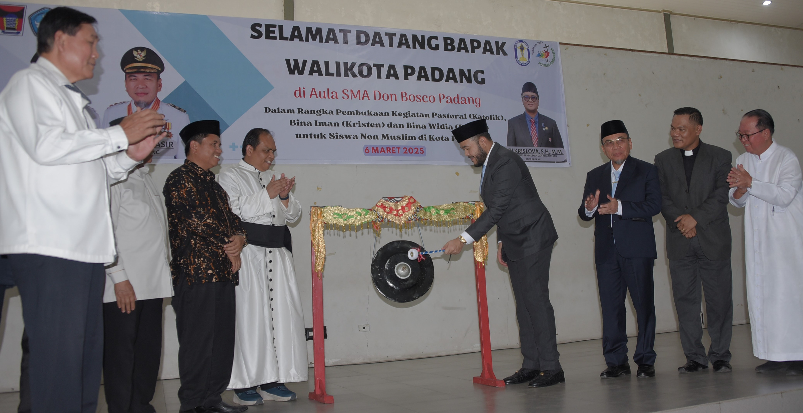 DUKUNGAN: Pembukaan Kegiatan Pastoral Bina Iman untuk siswa Katolik, Bina Widiak untuk siswa Buddha, serta kegiatan bagi siswa non-Muslim lainnya di Aula SMA Don Bosco Padang pada Kamis (6/3).(harris tj/sindotime)