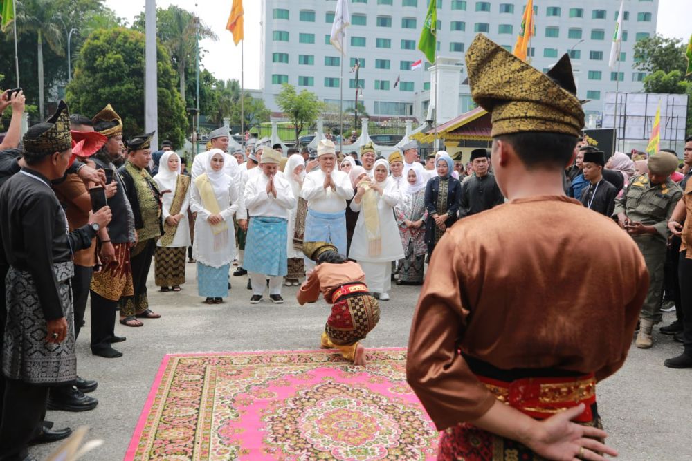 penyambutan digelar di Gedung Lembaga Adat Melayu Riau (LAMR), Pekanbaru, pada