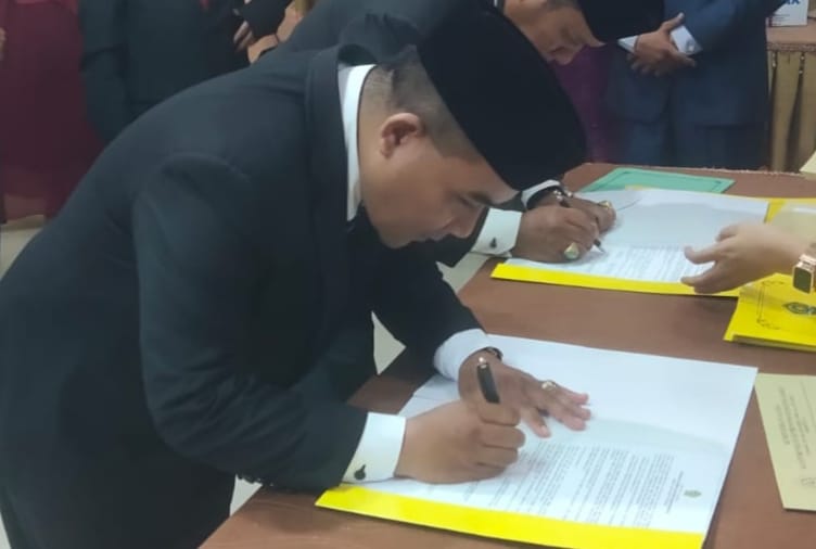 BERDEDIKASI TINGGI: Dafril Tuanku Bandaro ketika dilantik sebagai Kepala MAN Kota Sawahlunto pada Rabu (9/7).