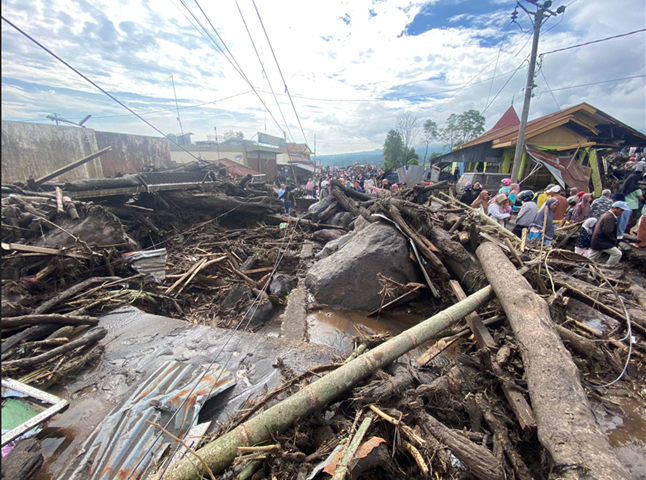 dampak kerusakan akibat banjir lahar dan longsor yang terjadi.(zoe)