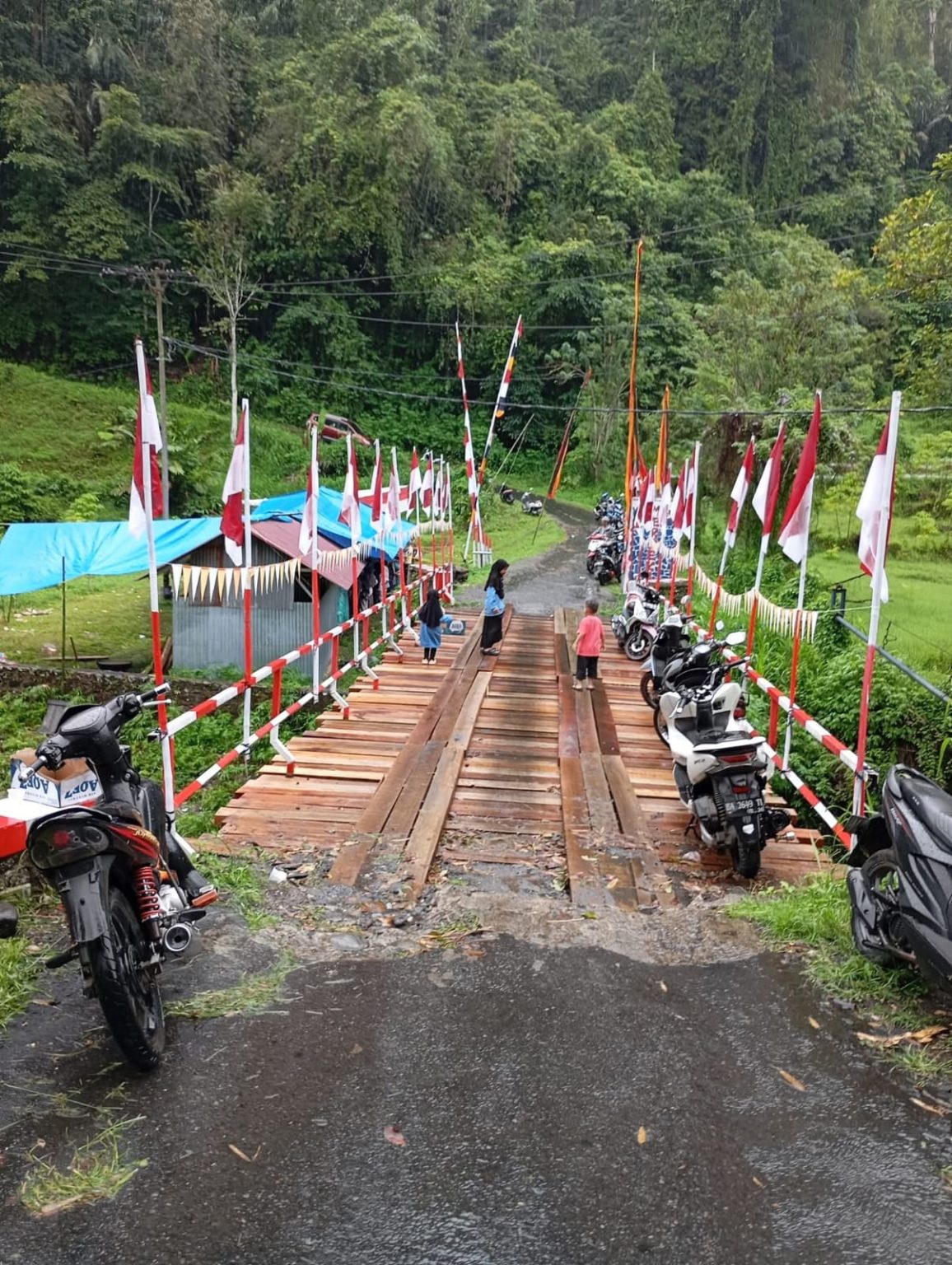 DIPERBAIKI: Jembatan penghubung antara Kecamatan Matur dan Palupuh, Kabupaten Agam yang sebelumnya sempat viral kini telah diperbaiki.(tori for sindotime)