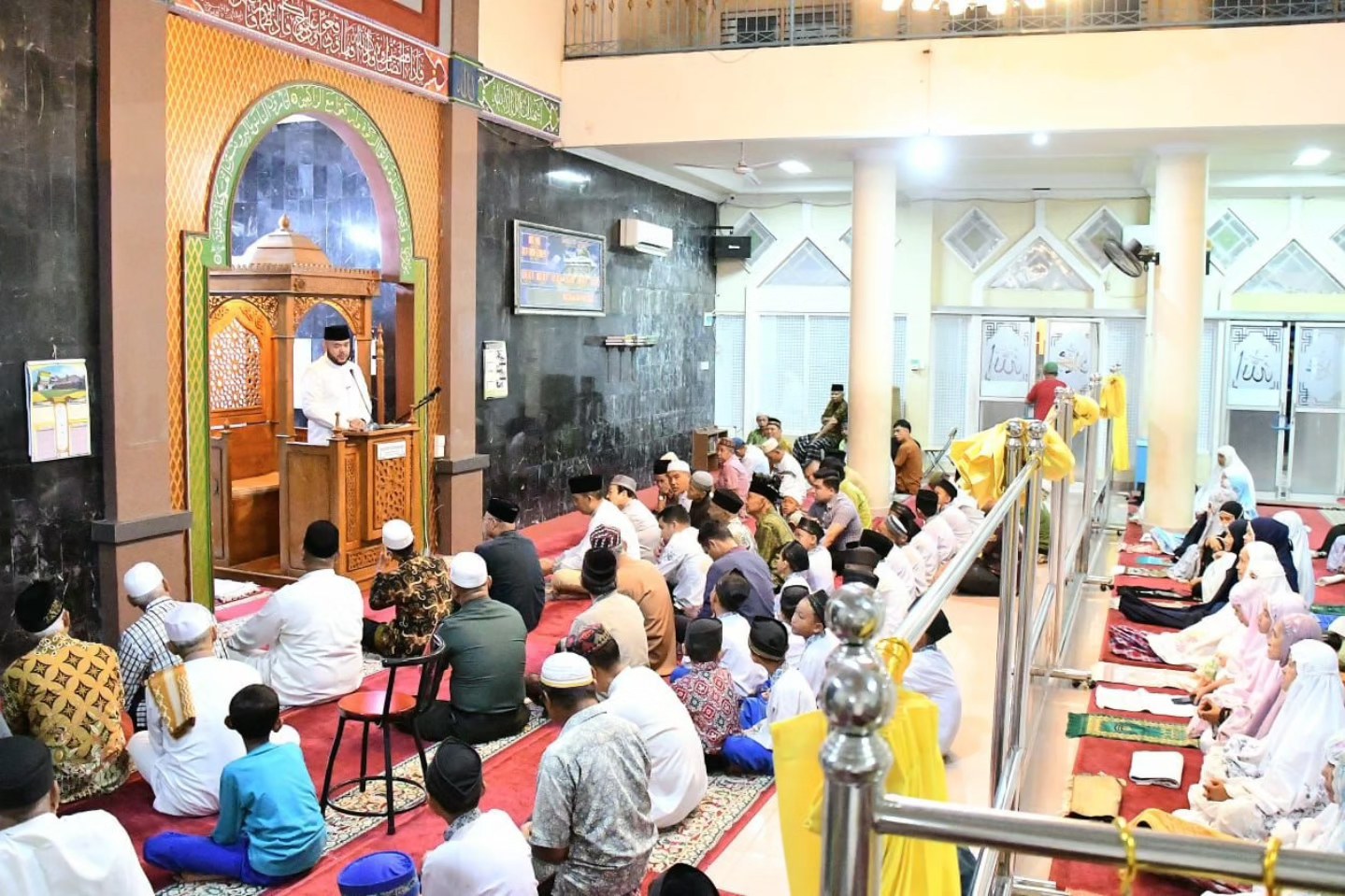 NASIHAT: Para jamaah mendapatkan wejangan dari Wali Kota Padang, Fadly Amran dalam kegiatan subuh mubarokah di Masjid At-Taubah, Komplek Wisma Utama, Kelurahan Parak Laweh Pulau Aie Nan XX, Kecamatan Lubuk Begalung, Minggu (7/9).