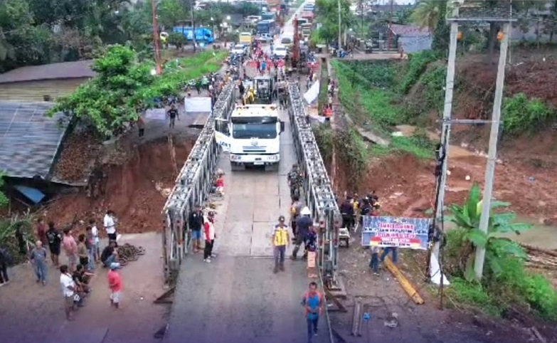 Jembatan darurat ini dibangun di ruas Muaro Bungo hingga