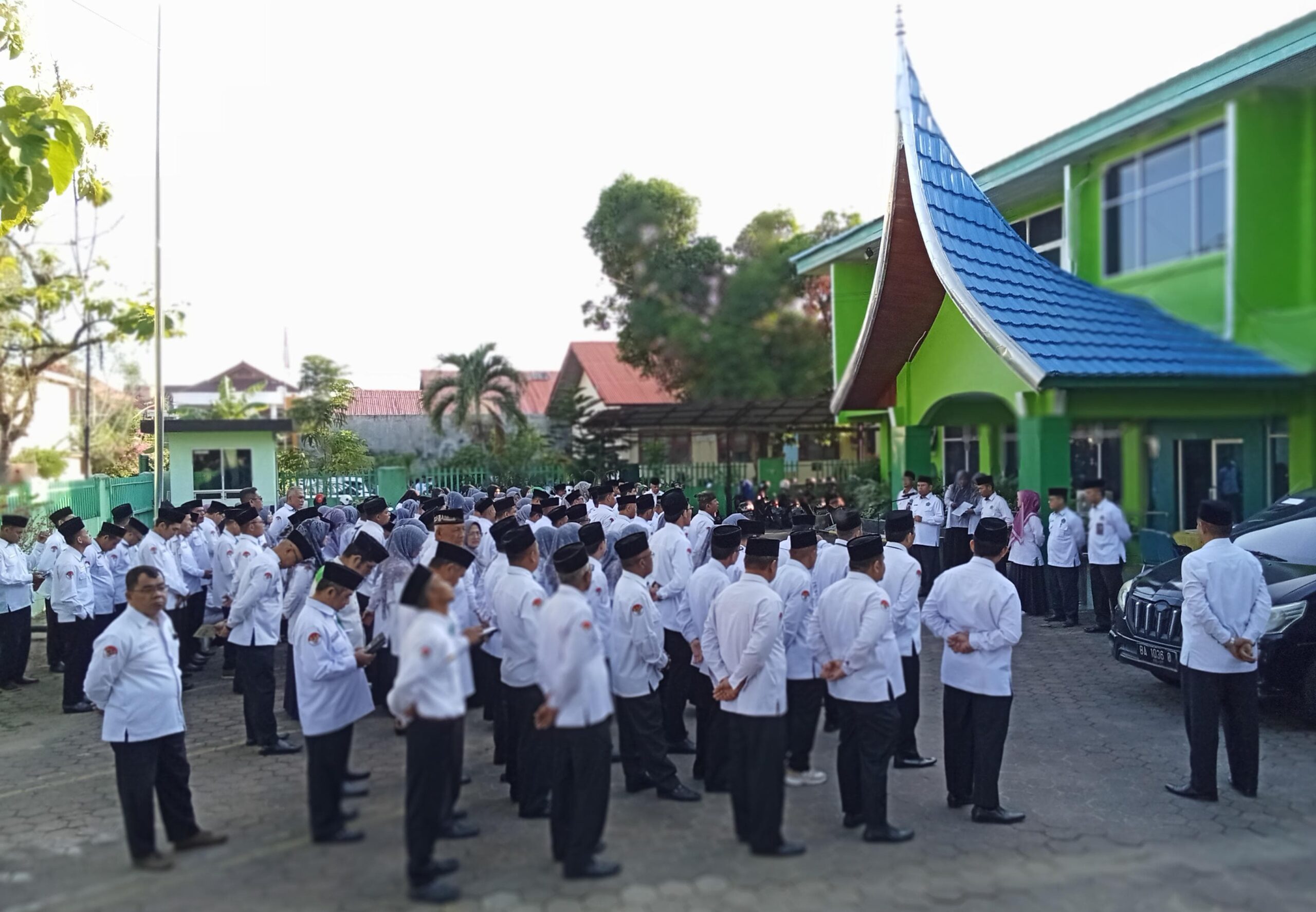 ARAHAN: Suasana apel pagi jajaran ASN Kemenag Kota Padang, Senin (30/6).(haris tj/sindotime)