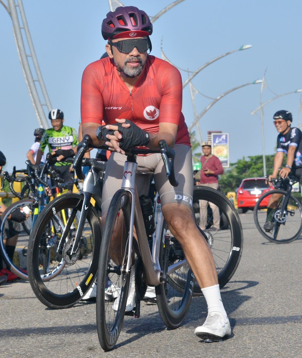 DUKUNGAN: Kadispora Sumbar, Maifrizon saat melakukan olahraga bersepeda beberapa waktu lalu. Mantan Pj Bupati Sijunjung ini memastikan untuk bonus atlet berprestasi sudah dianggarkan di APBD 2025.(dispora sumbar)