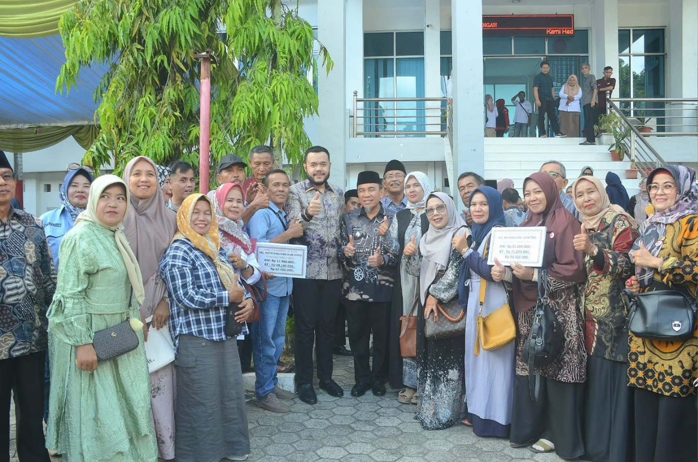 DISERAHKAN: Wako Padang, Fadly Amran dan Wawako Padang, Maigus Nasir usai menyerahkan bantuan operasional triwulan pertama tahun 2025 untuk RT/RW, guru TPQ/TQA, MDTA/MDTW, dan imam masjid.(pemko padang)