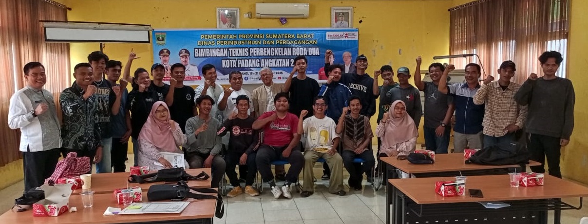 Padang, Sindotime-Sebanyak 20 pelaku usaha perbengkelan roda dua, mendapatkan penguatan kapasitas melalui Bimbingan Teknis (Bimtek) Perbengkelan Roda Dua Kota Padang Angkatan II yang digelar Dinas Perindustrian dan Perdagangan (Disperindag) Sumbar di Aula UPTD Logam Disperindag Sumbar pada 17-21 November 2025.